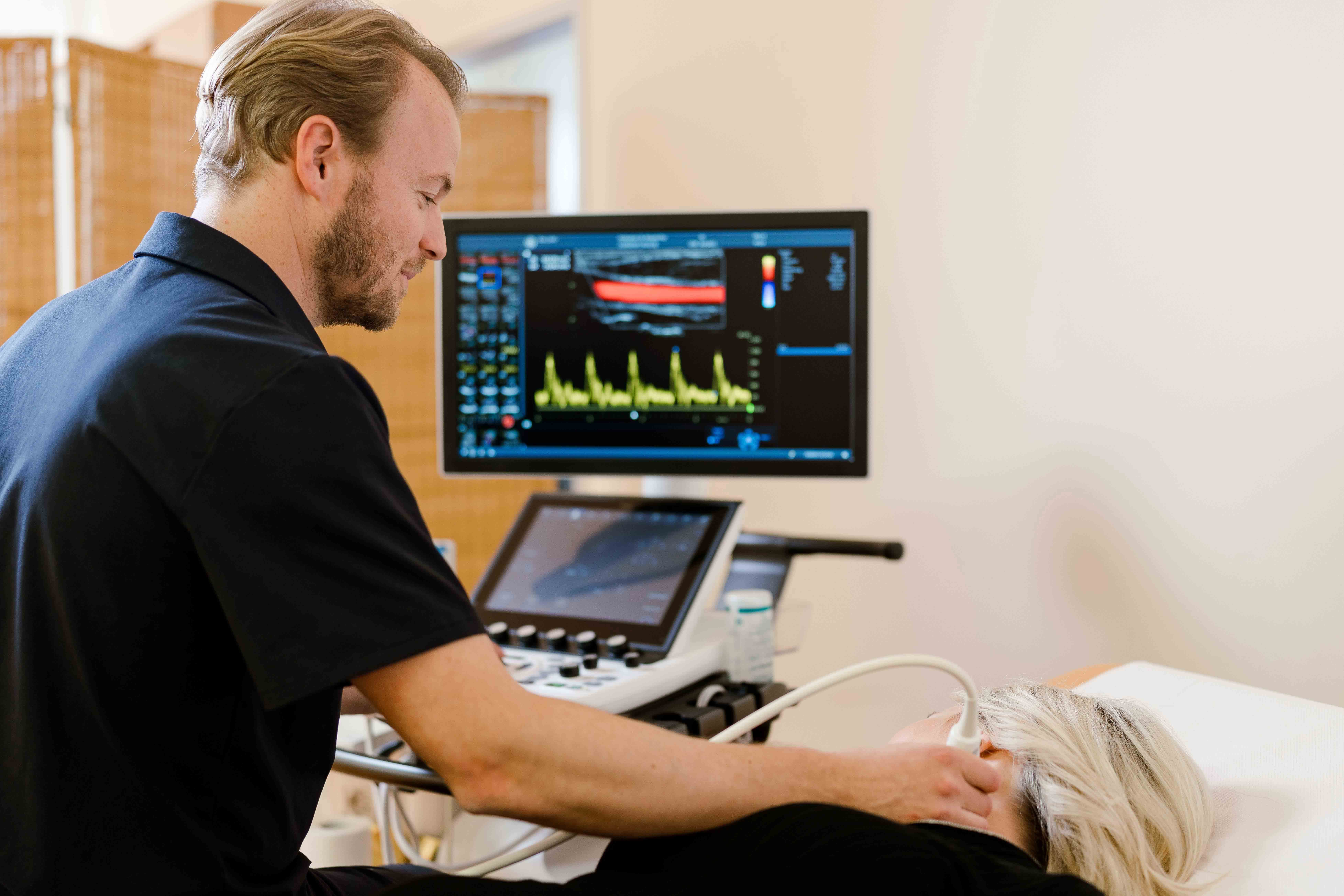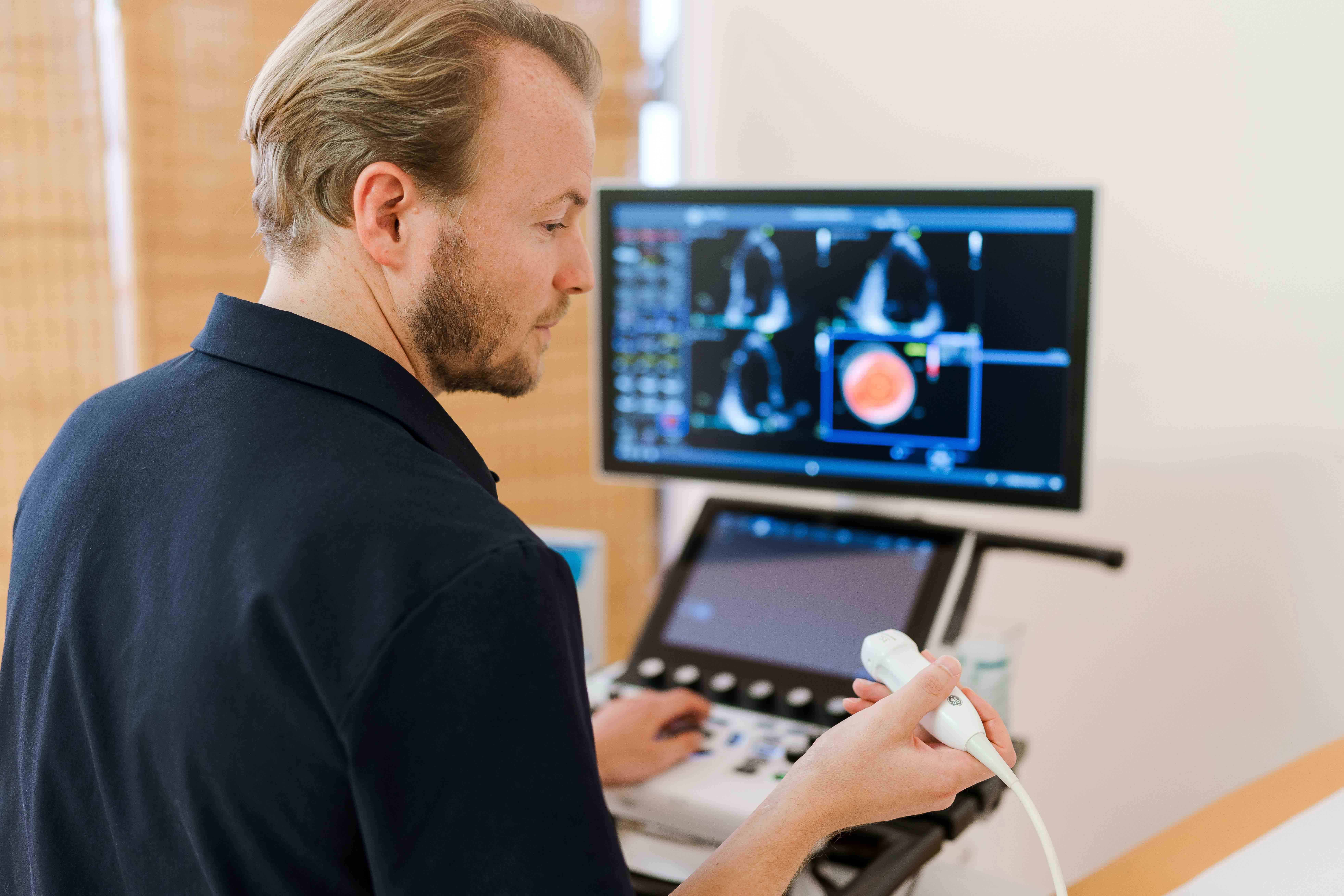 Mittels Sonographie untersuchen wir verschiedene Organsysteme: Bauchorgane, Schilddrüse, Halsgefäße sowie – im Rahmen der Echokardiographie – auch das Herz. Die Untersuchungen sind schmerzfrei, strahlungsfrei und werden zudem zeitgleich befundet.