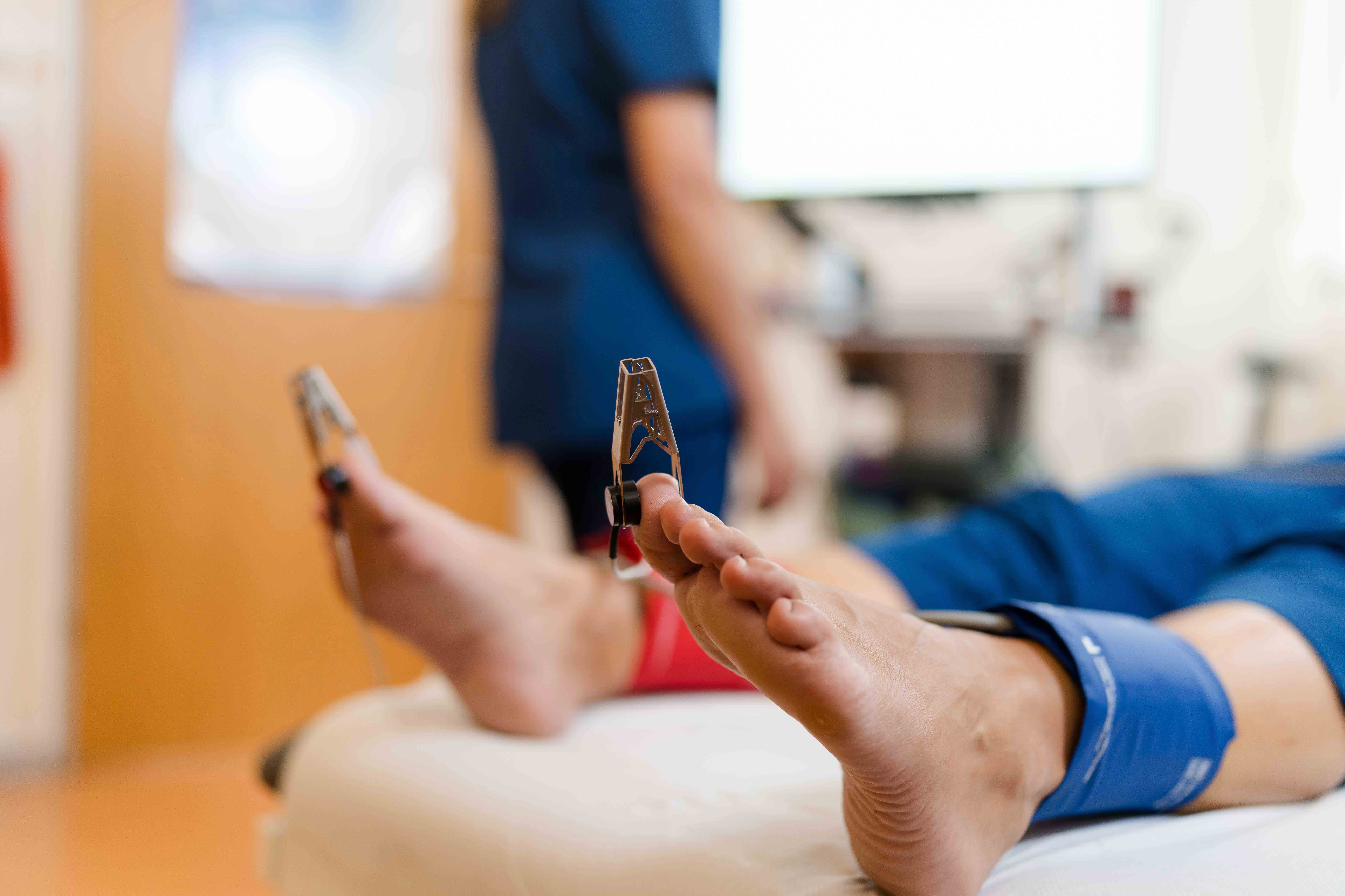 Die Durchblutung der Beinarterien und -venen wird mittels Pulsoszillographie (arteriell) und Photoplethysmographie (venös) beurteilt. Ergänzend erfolgt Duplexsonographie der Halsgefäße sowie Belastungs-EKG (Ergometrie), bei Bedarf mit weiterführender Organisation (CT/MRT/Szintigraphie oder Katheter-Untersuchung). Auch die Aorta wird im Rahmen der Gefäßdiagnostik begutachtet.
